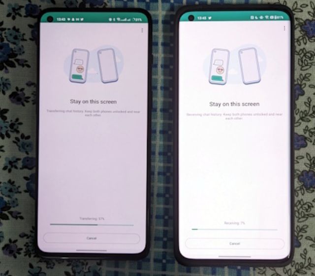 7. That’s it; the WhatsApp data sharing will now start. Stay on the screen that says “Transfer” until the move is done.